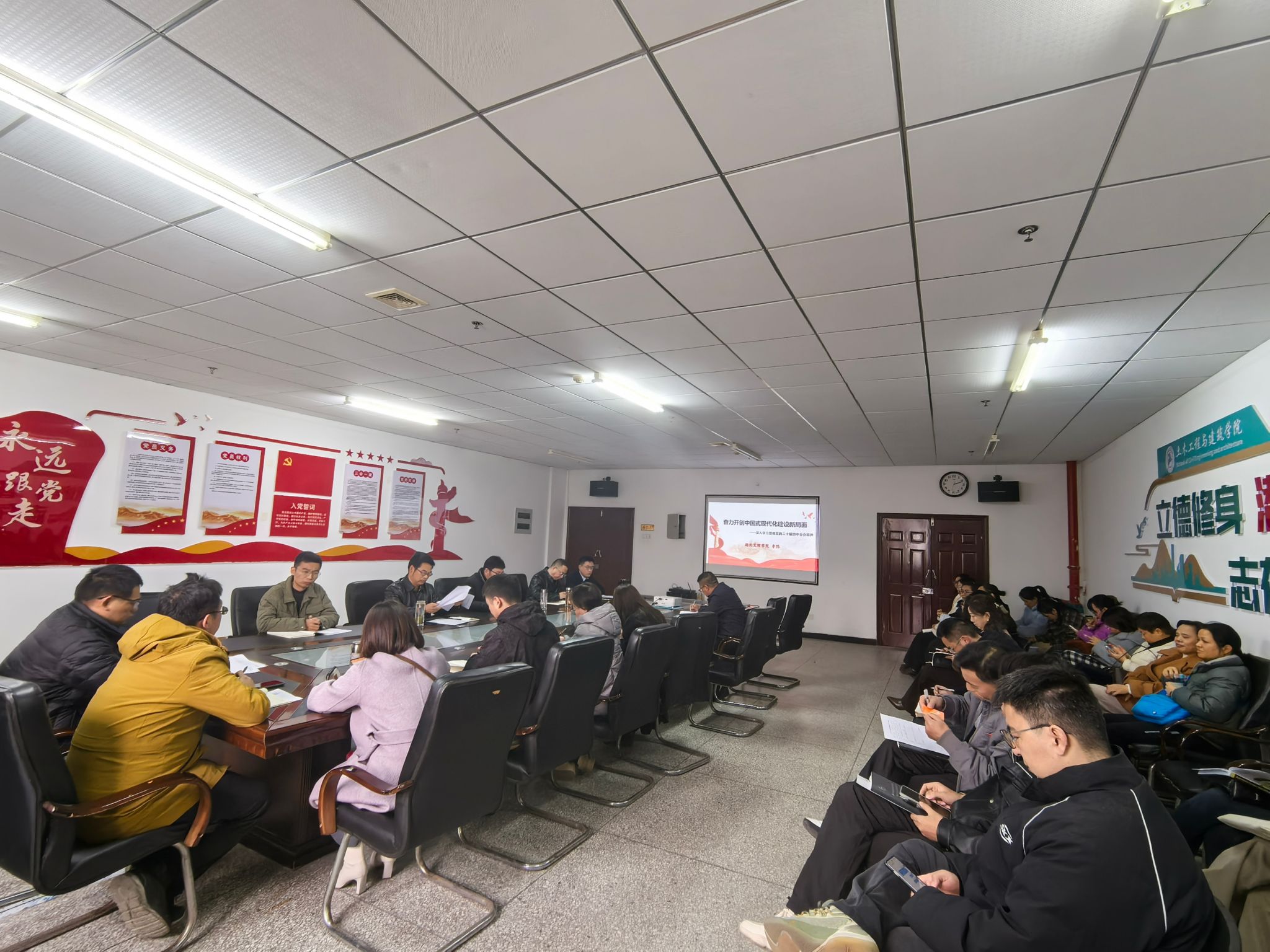 全体中层干部、教职工代表参加学习。