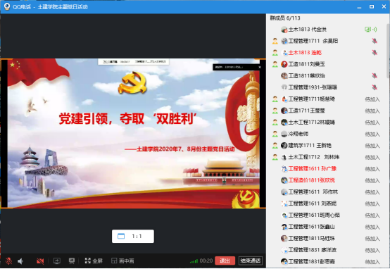 学生党支部于2020年7月29日晚七点半,开展了以“党建引领,夺取‘双胜利’”为主题的线上党日活动。