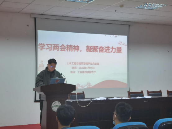 学生党支部在工科楼GE-410开展了以“学习两会精神,凝聚奋进力量” 为主题的党日活动。