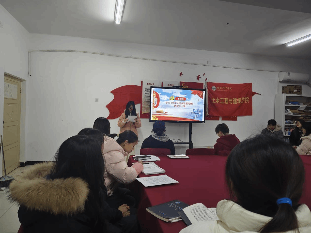 本次党日活动围绕八项内容展开。第一项:全体起立,奏唱国歌《义勇军进行曲》;第二项:全体学生重温入党誓词;第三项:由彭金丽同志带领大家学习诵读《中国共产党章程》;第四项:道路交通工程系学生党支部韩雯萱分享学习心得;第五项:土木工程系学生党支部孙凤青为大家讲解以“学深悟透笃行党章,决战决胜全年目标”为主题的党课,从重温党章筑牢信仰根基、学悟党的二十届四中全会精神、严守纪律保障胜利、凝心聚力再出发四方面展开,阐释了党章的根本意义与全会精神内涵,明确了纪律要求和行动方向;第六项:各支部代表黄宇佳同志、庞化鑫同志和王延宝同志依次交流发言;第七项:各支部小组围绕党日活动主题相互讨论,分享学习心得;第八项:组织各位党员将本月党费交给支部助理。